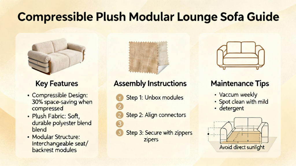 Compressible Plush Modular Sofa & Ottoman Set Guide