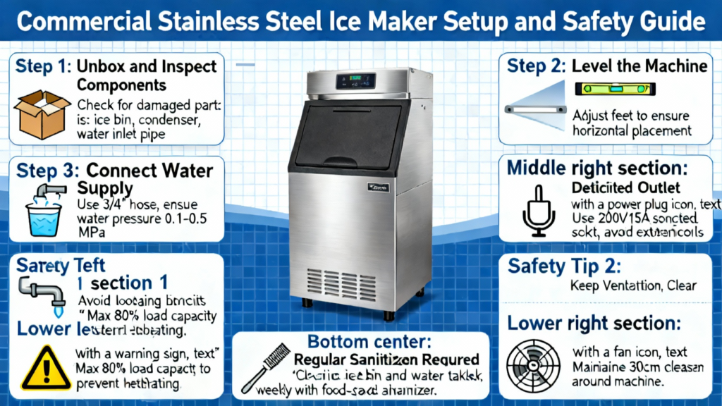 Commercial Stainless Steel Ice Maker Setup and Safety Guide