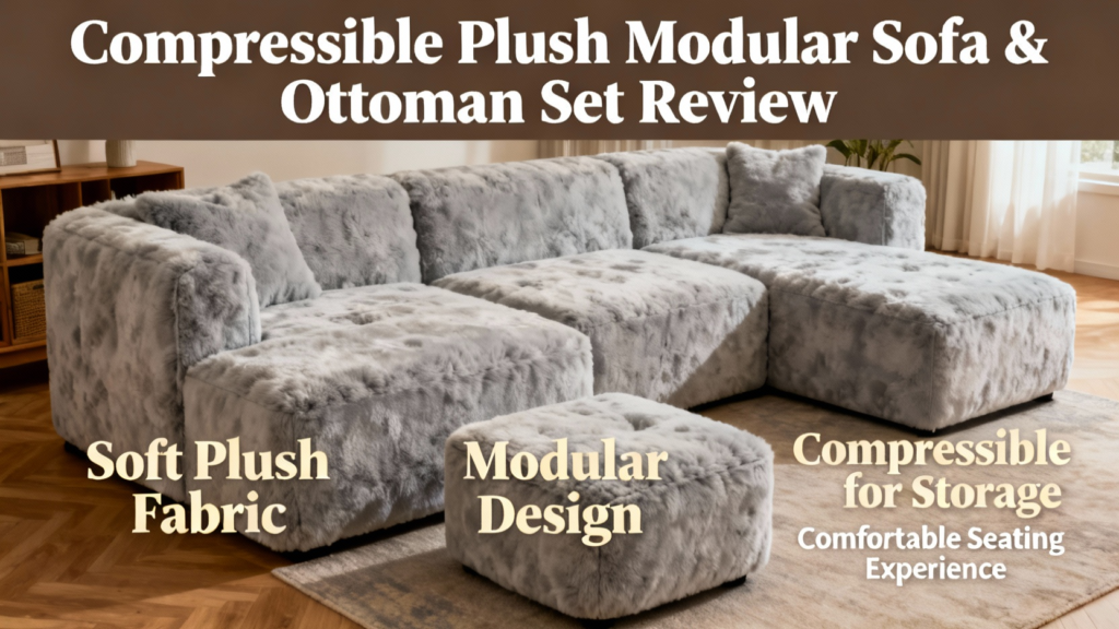 This compressible plush modular sofa set looks like the perfect space-saving solution for my cozy apartment!